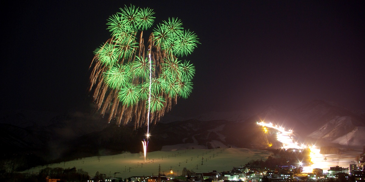 祝い酒の振舞い・信州小谷太鼓の演奏・たいまつ滑走・打ち上げ花火などイベント盛り沢山!!